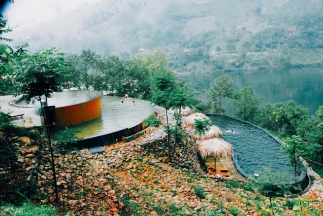 Thăm hồ xong, nếu có nhu cầu, thuyền sẽ đưa quý khách đến khoáng nóng Ban Mai retreat. Quý khách tự do tắm khoáng tại Ban Mai retreat, ngâm mình trong nguồn khoáng nóng tự nhiên giúp tăng cường sức khỏe. (chi phí tự túc)